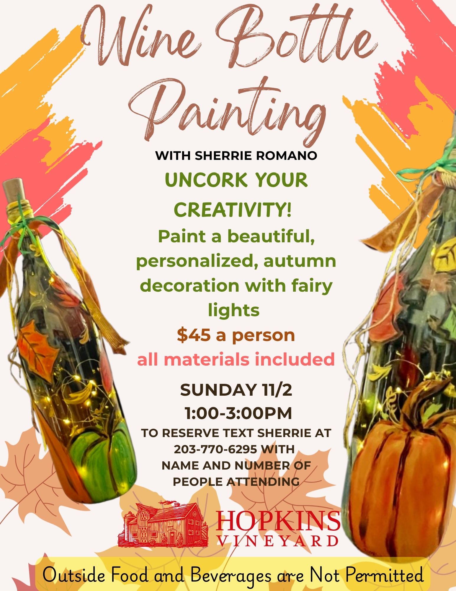 With Sherrie Romano. Uncork your creativity! Paint a beautiful, personalized autumn decoration with fairy lights.
